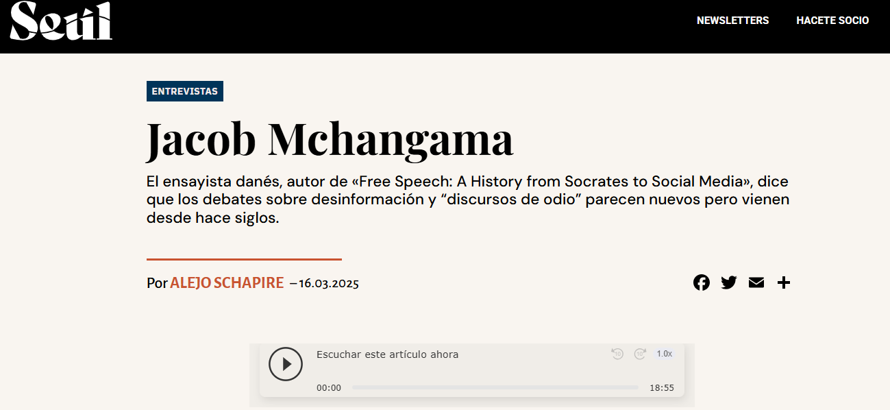 Spanish-speaking outlets and commentators engage with my book on free speech history — now available as 'Libertad de expresión: Una historia global desde Sócrates hasta las redes sociales'